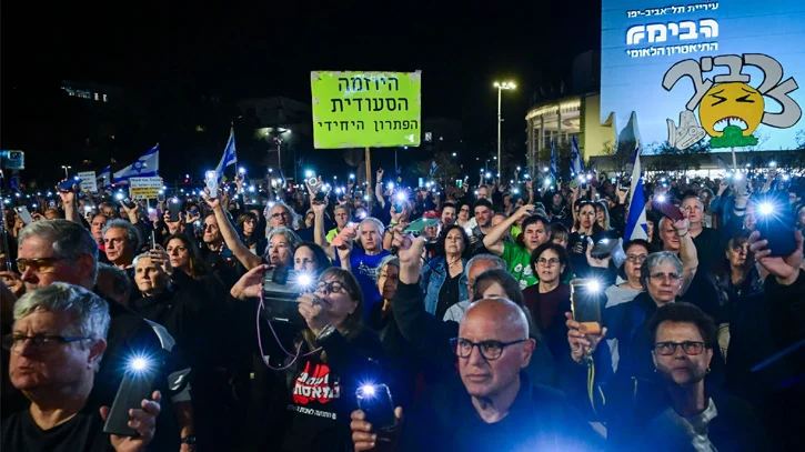 যুদ্ধ, সমাজ ধ্বংস এবং ইউরোপের সাথে সম্পর্ক নষ্টের অভিযোগ তুলে প্রধানমন্ত্রী বেনিয়ামিন নেতানিয়াহু ও তার সরকারের পদত্যাগ চেয়ে রাজপথে নেমেছেন লাখো ইসরাইলি। শনিবার (১৮ এপ্রিল) রাতে তেল আবিবে হাজার হাজার মানুষ বিক্ষোভে নামেন। বার্তা সংস্থা এএফপির এক প্রতিবেদনে এ তথ্য জানানো হয়েছে।