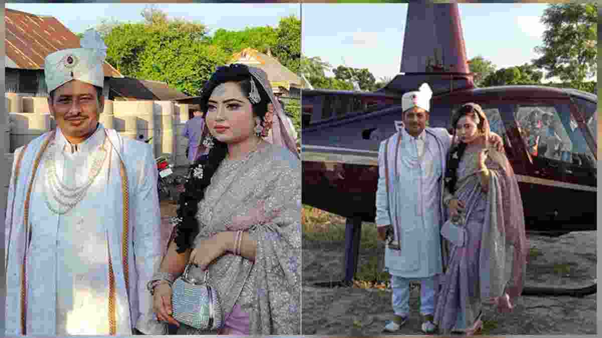 শুক্রবার দুপুরে ছোট কন্যাকে কোলে নিয়ে হেলিকপ্টারে চড়ে তিনি রওনা দেন নতুন শ্বশুরবাড়ির উদ্দেশে। সেখানে বিয়ে সম্পন্ন করে নববধূকে নিয়ে ফেরেন নিজ গ্রামে। নবদম্পতির আগমনকে ঘিরে গ্রামের শত শত মানুষ ভিড় জমান হেলিকপ্টার দেখার জন্য।