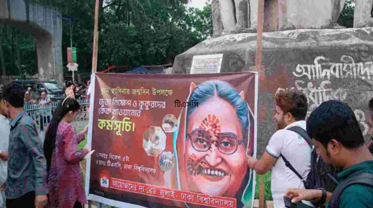 শেখ হাসিনার জন্মদিনে টিএসসিতে কেক কেটে খাওয়ানো হলো কুকুরকে