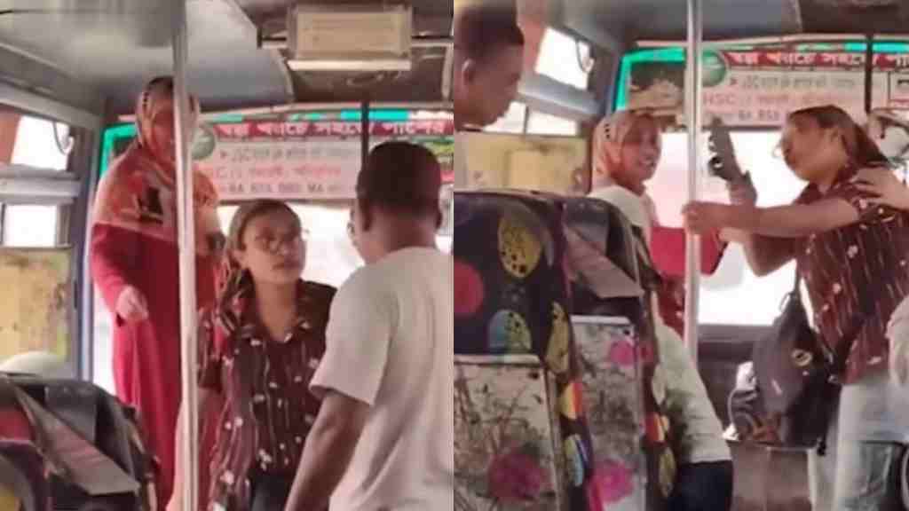 প্রকাশিত ভিডিওতে দেখা যায়, জিন্স ও টপ পরিহিতা এক তরুণী বাসে ওঠার পর সামনের সিটে বসা এক ব্যক্তি তার পোশাক নিয়ে আপত্তিকর মন্তব্য করেন। এতে ক্ষুব্ধ হয়ে তরুণী সামনে এগিয়ে এসে বলেন, “তুই আমার পোশাক নিয়ে কেন কথা বলবি?”