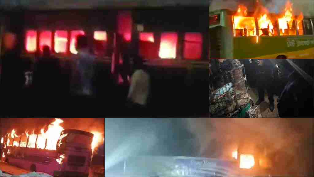 গাজীপুরের ভোগড়া পাইপাস, চক্রবর্তী এবং শ্রীপুরে তিনটি বাসে আগুন দেওয়া হয়েছে। সাভারের নরসিংহপুরে নারী ও শিশু হাসপাতালের সামনে আরেকটি বাসে অগ্নিসংযোগ করা হয়।