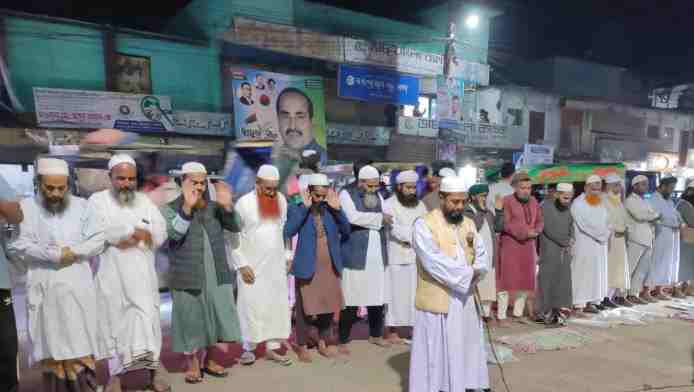 শেখ হাসিনা ও তার দোসর আসাদুজ্জামান কামালের ফাঁসির আদেশে নওগাঁয় ইসলামী দলগুলো ঐক্যবদ্ধভাবে দুই রাকাত শুকরানা নামাজ আদায় করেছে। সোমবার সন্ধ্যায় বাদ মাগরিব নওযোয়ান মাঠের পাশের প্রধান সড়কে এই নামাজ আদায় করে।
