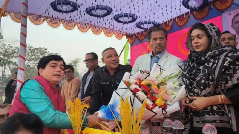 শনিবার বিকেলে উপজেলার দাঁড়িয়াল ইউনিয়নের কামারখালী কলেজ মাঠে নির্বাচনি জনসভায় অনুষ্ঠানের প্রধান অতিথি বিএনপি মনোনীত প্রার্থী আবুল হোসেন খান ফুলের মালা দিয়ে তাদের বরণ করে নেন।
